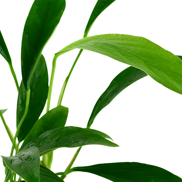 Anubias barteri var. angustifolia from West Africa is a beautiful plant with long, narrow leaves.