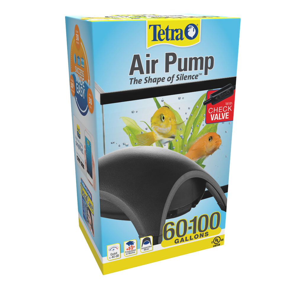Tetra Whisper Air Pumps keep your aquarium oxygen levels high, helping keep your fish healthy. And with seven different sized pumps, there is sure to be one that is perfect for your aquarium. This line of air pumps has a unique dome shape and rubber feet. This flattens sound wave frequencies and helps prevent them from reflecting off of surfaces such as tables and shelves, allowing your pump to produce minimal noise. Whisper Air Pumps can be used in deep tanks (up to 8 feet deep), and have enough strength to power long decorator air stones, multiple air stones in one or more tanks, and protein skimmers for salt water aquariums. Every Tetra pump comes with a warranty, see product label for details.
